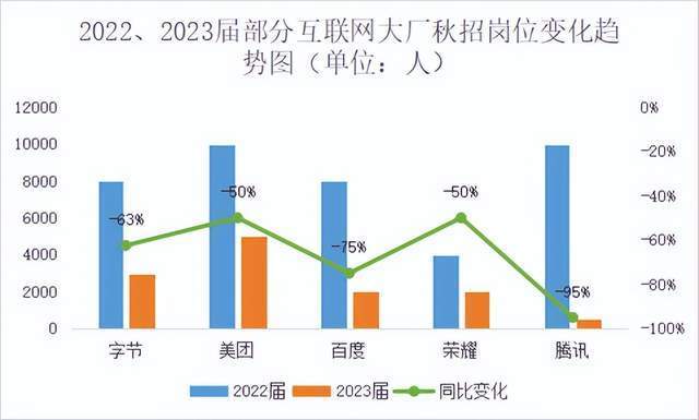 疫情的第三個年頭,就業市場也比往年蕭條許多。就今年的秋招來看,各行各業都在縮招,最明顯的信號就是互聯網大廠的“腰斬”式縮招。有行業人士預估,字節縮招63%、美團縮招50%、百度縮招75%、榮耀縮招50%、騰訊縮招高達95%,而實際情況,可能比預估還要殘酷。