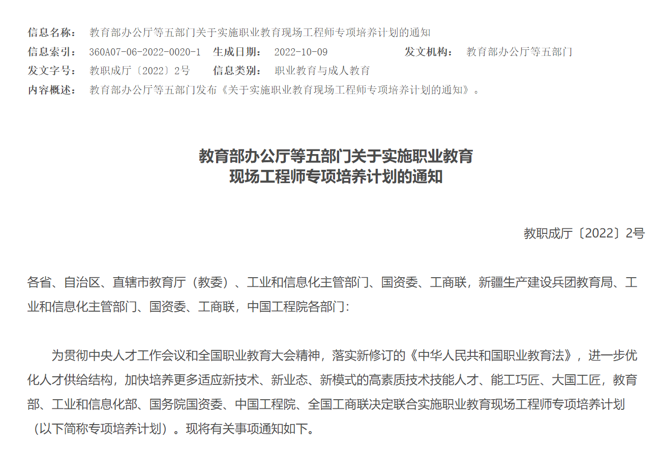 同時,其在職業教育業務中數字經濟類專業的相關布局也有望看到利好。日前,教育部、工業和信息化部、國務院國資委、中國工程院、全國工商聯決定聯合實施職業教育現場工程師專項培養計劃。