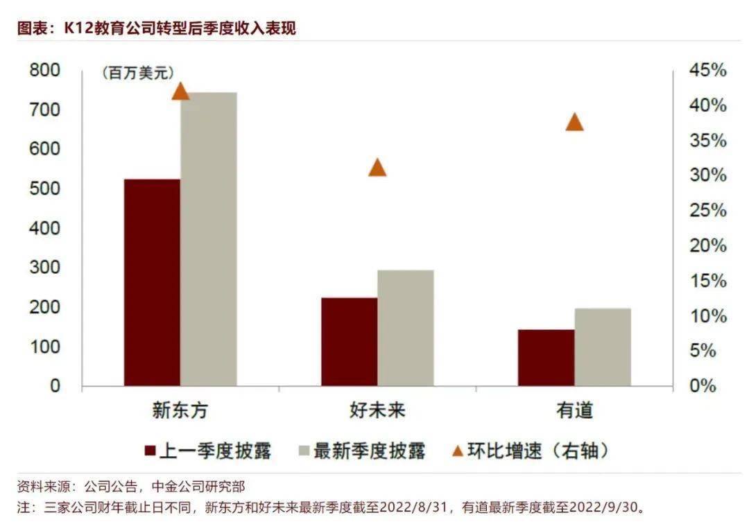 近日新東方、好未來、網(wǎng)易有道等頭部教育上市公司發(fā)布最新財(cái)務(wù)報(bào)告,對(duì)于教育行業(yè)轉(zhuǎn)型成果,中金近日發(fā)布研報(bào)認(rèn)為,這是一個(gè)“破而后立,業(yè)績(jī)修復(fù)可期”的賽道。