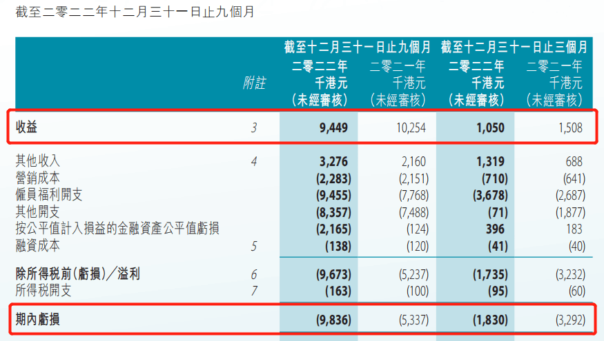2023財年第三季度,公司實現收益105萬港元,同比下滑30%,期內凈虧損183萬港元,延續了上年同期的虧損態勢。繼第一季度虧損650萬港元、第二季度虧損145.9萬港元之后,這已經是大地教育2023財年連續第3個季度虧損。