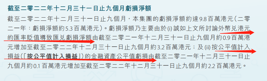 利潤方面,2023財年前三季度大地教育虧損凈額達到983.6萬港元,同比擴大84.3%。公司股東應占期內虧損為1040.3萬港元,虧損同比增長85.24%。僅前三個季度的虧損就已經超過了大地教育去年全年虧損455.2萬港元的兩倍。對此,大地教育依然將其歸咎于“外幣兌港元的匯率貶值”的影響,期內匯兌虧損凈額高達320萬港元,上年同期僅有90萬港元。而且,按照公平值計入損益的金融資產公平值虧損也由上年同期的10萬港元上升至報告期內的220萬港元。