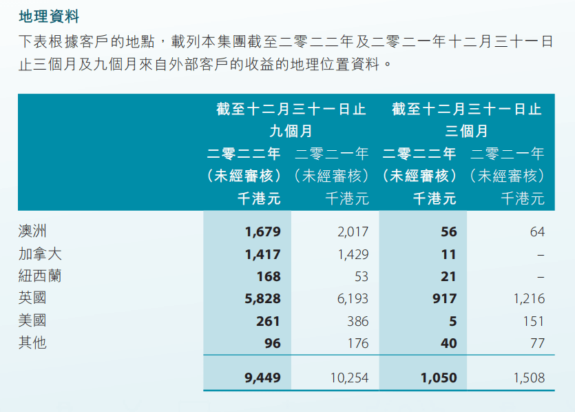 截至2022年12月31日止九個月,大地教育收益同比減少7.9%至944.9萬港元。公司將收益減少的原因歸結于匯率貶值,稱收益主要以集團客戶所在地區的外幣計值,但期內外幣兌港元的匯率貶值,導致收入同比減少。