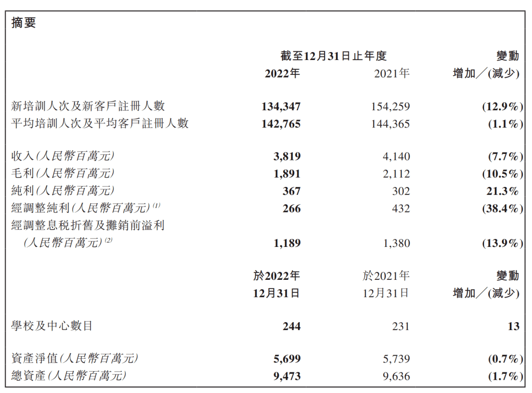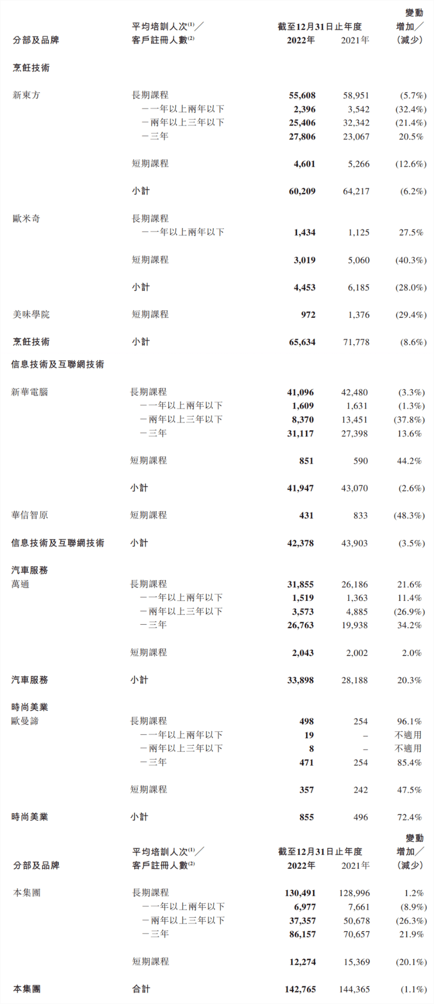 財報顯示,2022年其新培訓人次及新客戶注冊人數共計13.43萬人,較2021年的15.43萬人同比減少12.9%;平均培訓人次及平均客戶注冊人數為14.28萬人,較2021年的14.44萬人同比減少1.1%。