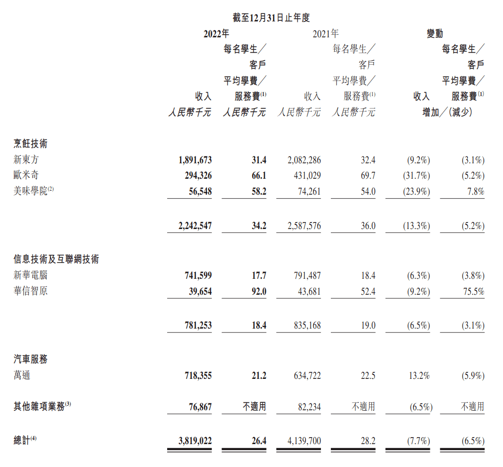 截至2022年12月31日,中國東方教育收入共計38.19億元,較2021年同期的41.40億元減少了7.7%。對此,中國東方教育表示,主要由于2022年度其招收的新生人數及新客戶注冊人數減少所致。