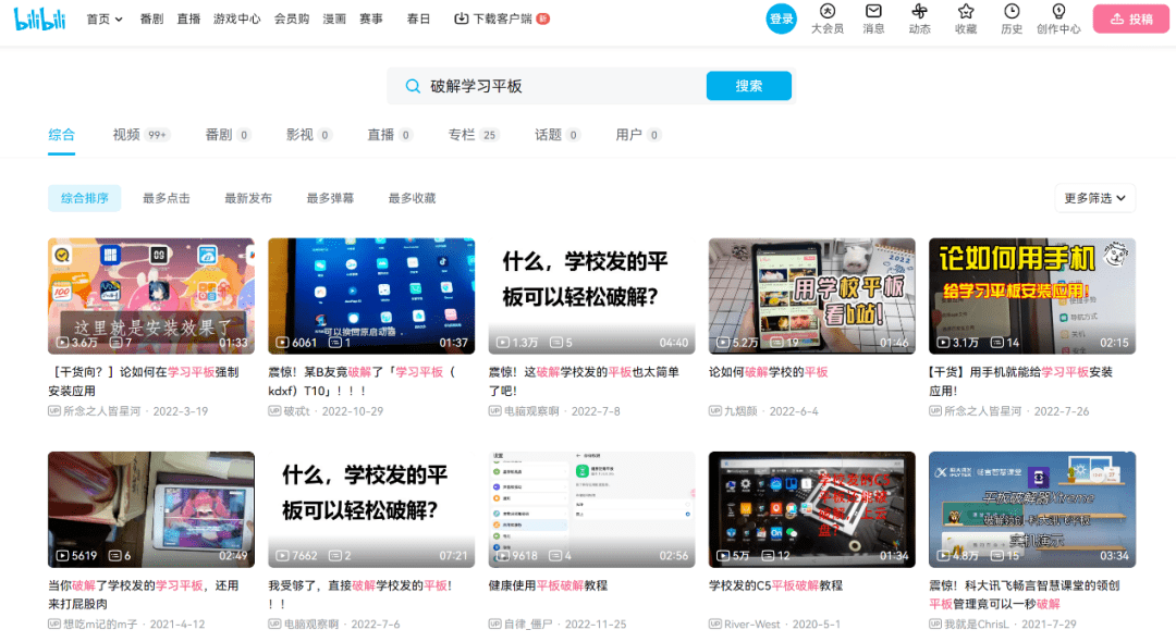 然而日前,藍鯨教育記者關注到在嗶哩嗶哩這一學生群體常用的視頻網站中,“破解學習平板”的相關視頻不勝枚舉,其中更是有“如何在學習平板強制安裝應用”的“干貨分享”,以及“破解學校發的平板”的相關內容。數據好的相關視頻播放量達數萬次。