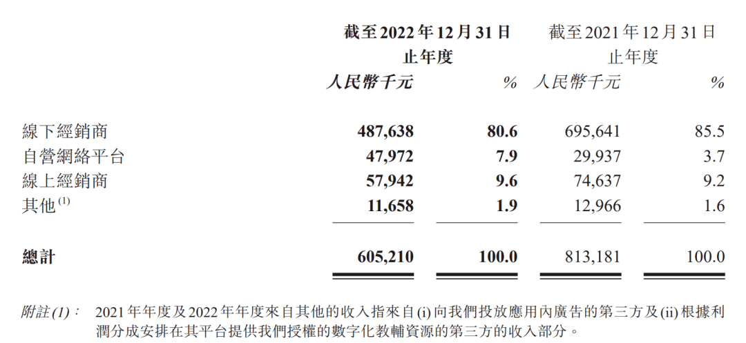 財報數據顯示,截至2022年12月31日,讀書郎線下經銷商銷售收入共計4.88億元,同比減少29.9%,占總營收比重達80.6%,而在2021年度線下經銷商的銷售收入占總營收的比重則達到85.5%。另據此前財報數據統計,2019年至2021年,讀書郎線下經銷商創造的利潤分別占公司總利潤的91.7%、85.0%及85.5%。