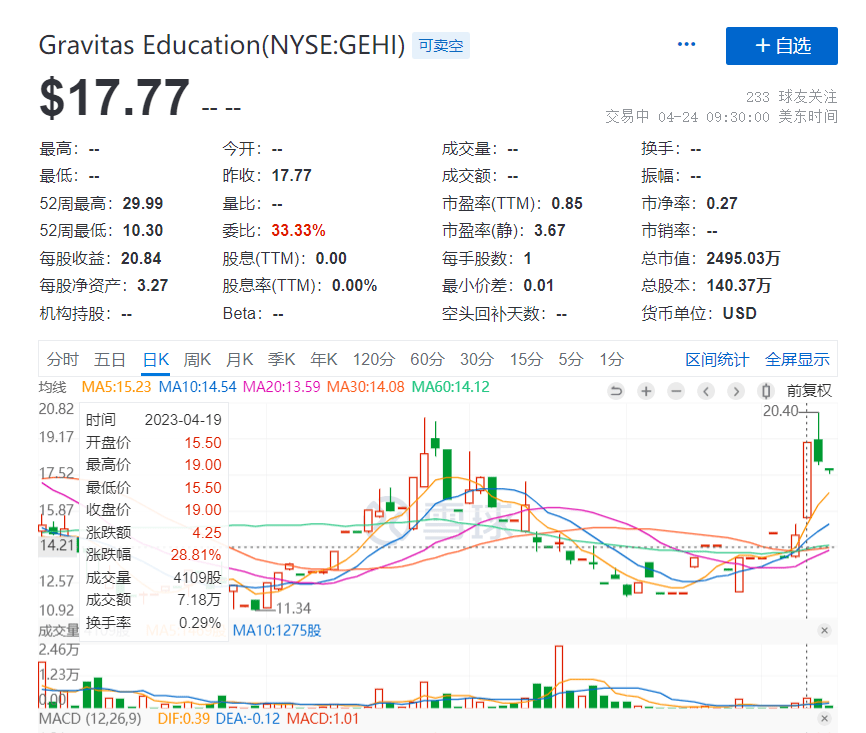 更名后,啟今教育保持了相對穩定的股價。更名之初為14美元左右,如今為17美元左右。