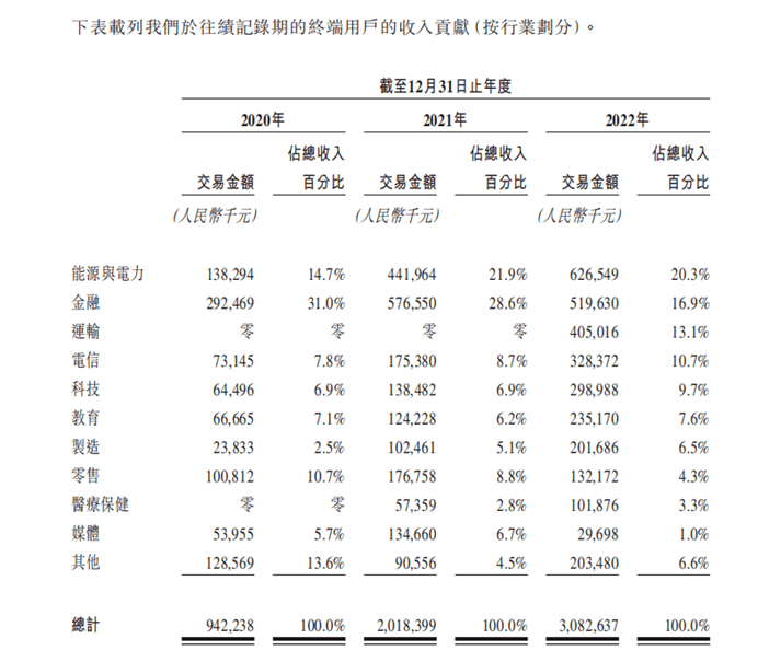 而值得注意的是,AI業務作為第四范式的主營業務,商業化前景似乎也并不明朗。招股書顯示,第四范式的終端用戶所屬行業包括能源電力、金融、教育等十數個領域,而從行業用戶收入占總收入百分比來看,最高的能源與電力用戶收入占比僅有20.3%,金融用戶收入占比為16.9%,教育用戶收入占比為7.6%……總體來看,第四范式目前似乎還沒能為產品找到一個適配的具體領域,這導致公司客戶行業分布分散,也不夠穩定。在第四范式各報告期的前五大客戶名單中,除了一家客戶H,沒有任何一家客戶兩次出現在名單中。