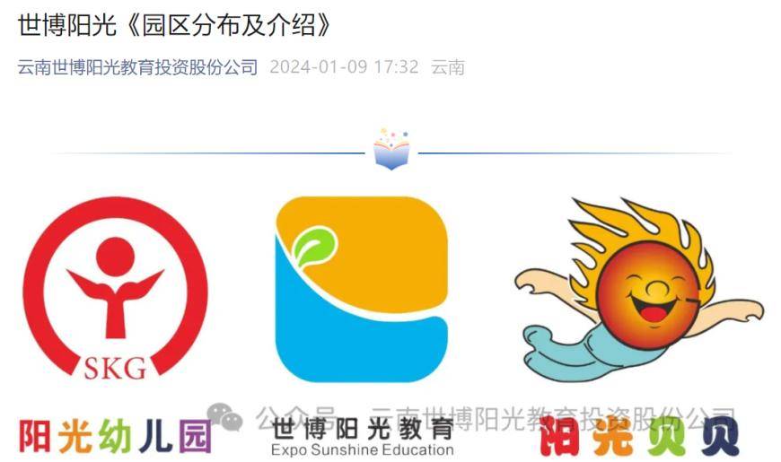 云南世博公司的官方微信公眾號也明確顯示,四分園就是陽光花園陽光幼兒園,地址同樣是“云南省曲靖市陽光花園南苑路90號”。