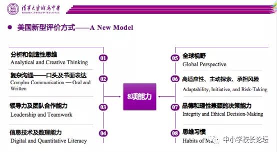 眾多美國中學已經(jīng)不滿足現(xiàn)有的大學招生方式,正在尋求改變。由近百所美國頂尖私立中學組成的聯(lián)盟 Mastery Transcript Consortium(MTC)創(chuàng)設了新型評價方式A New Model。不含分數(shù),不評級,而是持續(xù)追蹤記錄、評估學生的8項能力。10 年之內(nèi),這種動態(tài)的電子檔案就將終結(jié) SAT、ACT 等 “美國高考” ,成為全美大學錄取新生的評價體系。