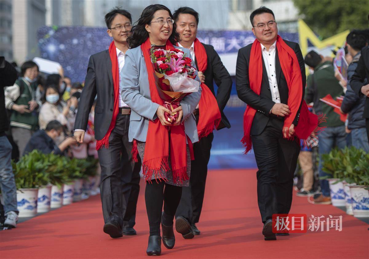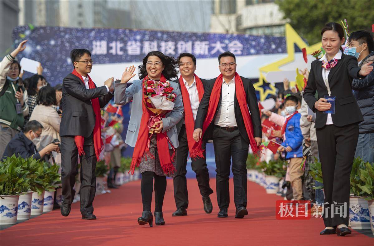 3月16日上午,在武漢洪山禮堂前舉行的湖北省科技創新大會,院士專家走紅毯活動的現場,迎來了一位女科學家趙書紅和她的科研團隊,他們的科研項目是豬功能位點液相基因芯片研發與選種選配應用。
