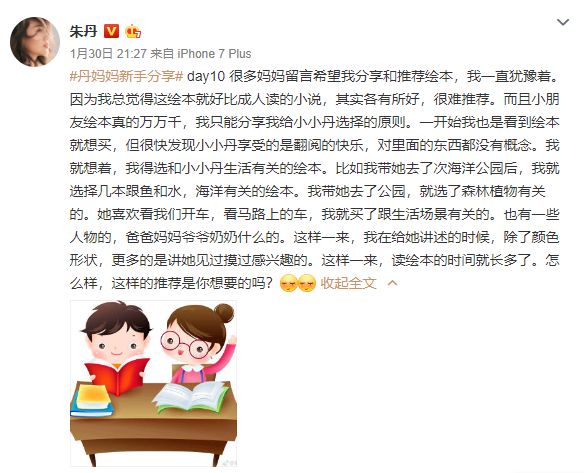 我們在小紅書上看到好多好多明星媽媽推薦所謂的“母嬰好物”,但朱丹說她不推薦繪本書單,只分享挑選繪本的準則。只有一個認真帶娃的媽媽才會有那么多的真切感悟。