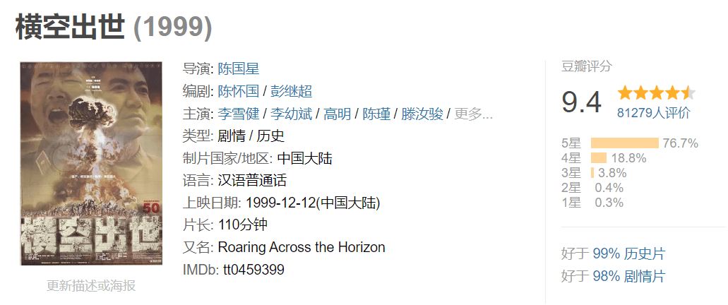 而中國,也有自己的《奧本海默》,很多網友翻找出1999年高分老電影《橫空出世》來看。