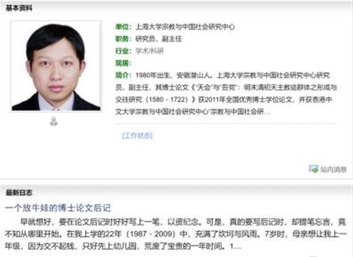 2009年,他分別獲得北京大學與香港中文大學哲學博士學位,博士論文曾獲香港中文大學第五屆宗教與中國社會研究優秀博士論文獎(2010)、全國百篇優秀博士論文獎(2011)。