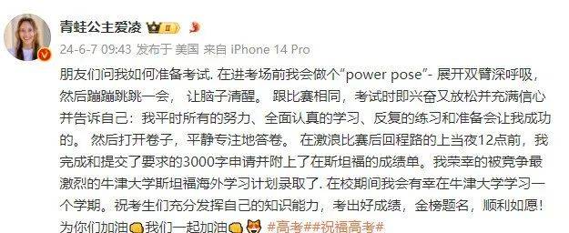 原標題:愛凌成功通過牛津大學的入學考核 她的人生就是一篇大型爽文
