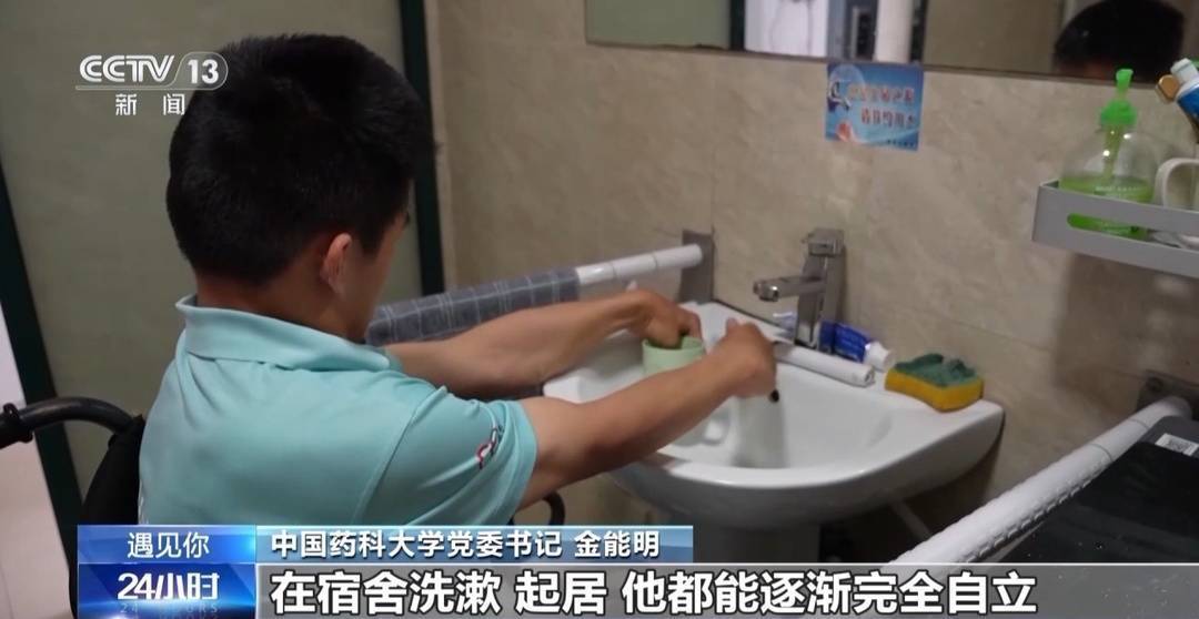 中國藥科大學黨委書記 金能明:小學一直到高中,都是在父母的陪護下完成學業的。到了大學里獨立生活,他開始也是沒有信心。在黨團組織的幫助下,周邊老師的鼓勵下,他不斷地增強了信心能力,在宿舍洗漱、起居,他都能逐漸地完全自立。