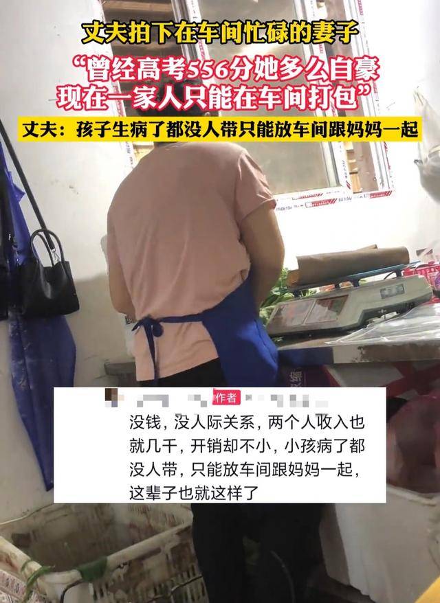 丈夫拍在車間忙碌的妻子:曾經高考556分多自豪,現在照顧孩子很難