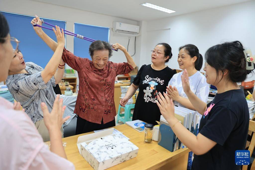 9月10日,南通市啟秀中學為教師李庾南送上一根彈力繩作為教師節禮物。