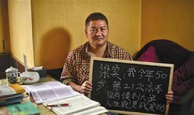 原標題:“高考釘子戶”梁實:參加過23次高考,頭發(fā)漸白,如今54歲仍堅持
