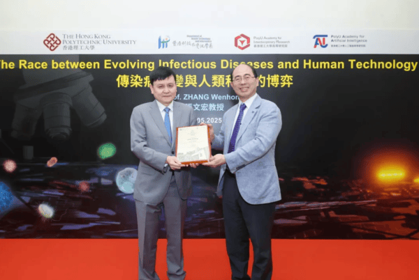 張文宏在香港理工大學演講的主題是“傳染病演變和人類科技的博弈”。