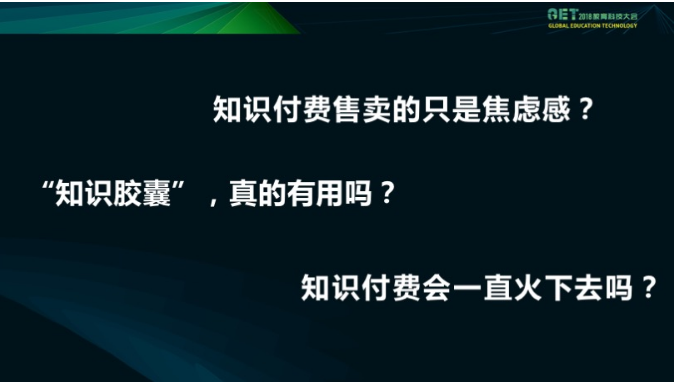 我們在之前只能看文字才能獲取知識,現在有很好的音頻、視頻手段為什么不用呢?所以知識服務、知識付費已經很好的應用了這些技術手段,所以它一定會持續發展下去,它是不可逆的,速度會減慢,但是行業會持續發展。