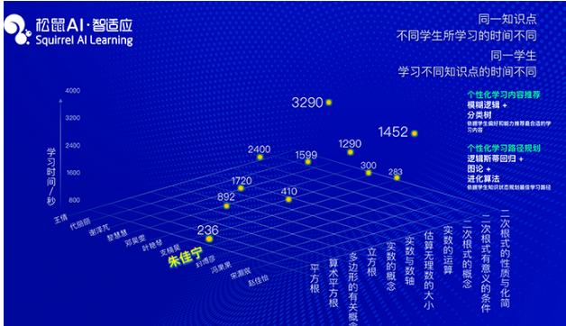 第三類是松鼠AI所做的,構建以個體為核心的學習體系,把產品直接給學生使用并非老師使用,老師的作用是輔助系統教學。