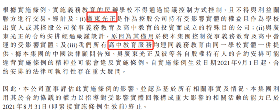 公開資料顯示,光正教育將高中業務同義務教育階段業務一樣減值剝離。楓葉教育則選擇“現有高中學生轉入在中國擁有獨立經營牌照的高中”。