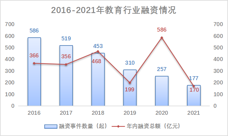 與歷年教育行業融資數據比較,2021年都可謂是教育行業投融資的一個低谷。