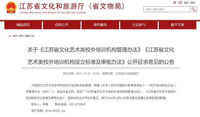藍鯨教育記者了解到,為規范文化藝術類非學科類校外培訓機構的管理,日前,江蘇省文化和旅游廳(省文物局)發布《江蘇省文化藝術類校外培訓機構管理辦法》、《江蘇省文化藝術類校外培訓機構設立標準及審批辦法》征求意見稿。