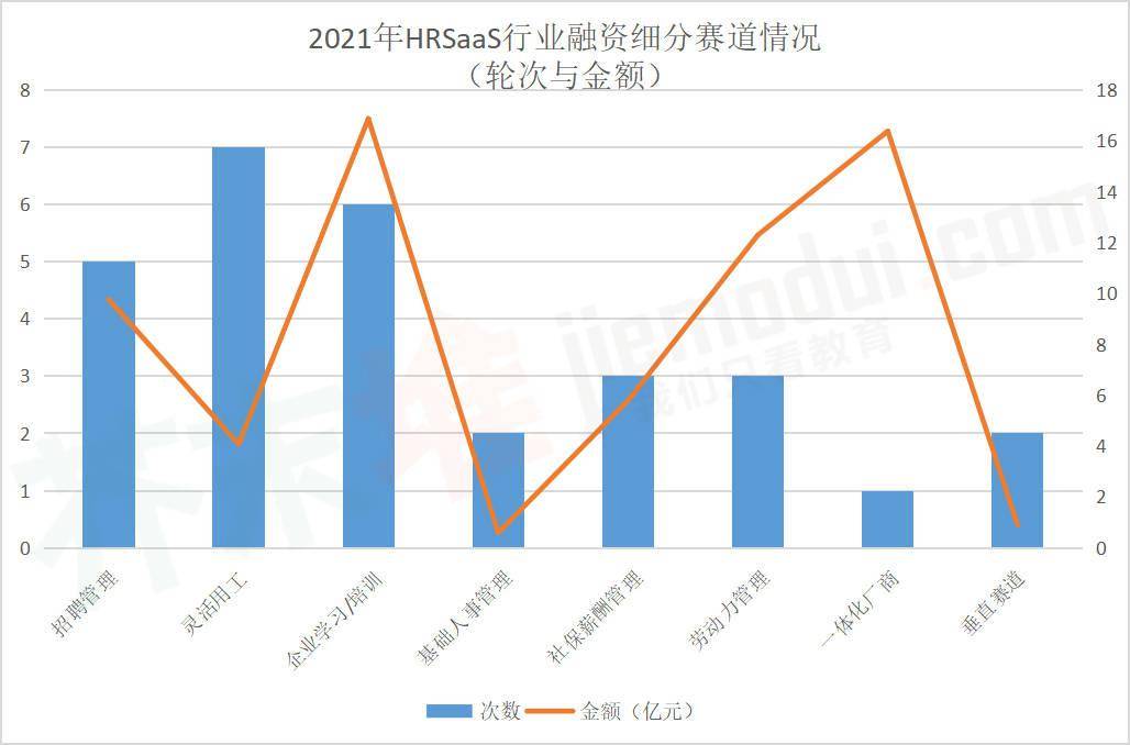 整體回顧2021年,中國HRSaaS的融資呈現(xiàn)早期投資多點開花,主要資金涌向少數(shù)成熟企業(yè)的態(tài)勢,企業(yè)培訓(xùn)領(lǐng)域較被資本看好。與此同時,靈活用工尤其是藍(lán)領(lǐng)用工領(lǐng)域正在逐漸引起關(guān)注。