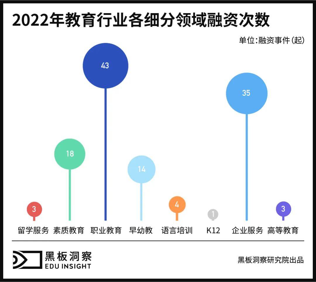 2022 年是教育行業(yè)重塑的一年。這一年,國家職業(yè)教育類政策動力充足,素質(zhì)及家庭教育類政策持續(xù)完善,企業(yè)服務(wù)領(lǐng)域需求旺盛,行業(yè)在摸索中逐漸趨于明朗。但在過去多重因素的影響下,教育市場還似處于“迷霧”中,轉(zhuǎn)型、放棄、精進(jìn)在教育行業(yè)里同時發(fā)生。借此,黑板洞察梳理了 2022 年教育行業(yè)融資數(shù)據(jù),希望從資本視角切入,洞察教育新時代下的發(fā)展新風(fēng)向。