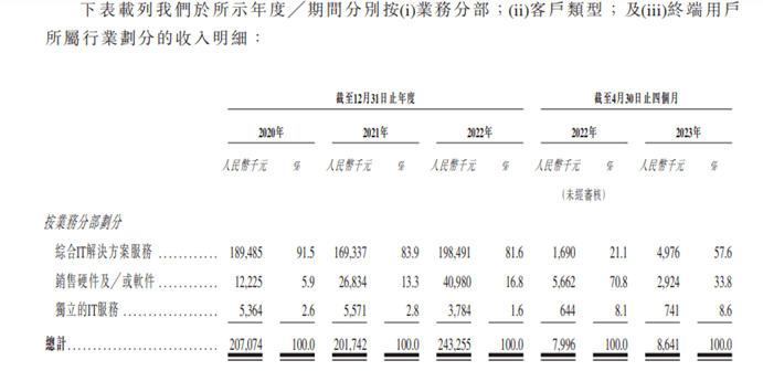 最新招股書顯示,邁越科技成立于2003年,是廣西教育及政府信息化市場中一家綜合IT解決方案服務提供商,主要提供綜合IT解決方案服務、軟硬件銷售、獨立IT服務,其中IT解決方案服務貢獻了八成以上的收入。