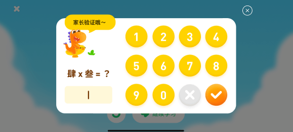 作為教育品牌,瓜瓜龍啟蒙積極響應(yīng)政策和家長(zhǎng)用戶的需求,在行業(yè)內(nèi)率先推出了“APP使用時(shí)長(zhǎng)管理”功能。為了避免孩子被有趣的動(dòng)畫和環(huán)節(jié)所過度吸引,在不影響學(xué)習(xí)進(jìn)度的情況下,軟件中可開啟“APP使用時(shí)長(zhǎng)管理”功能,到達(dá)累計(jì)時(shí)間或次數(shù)后即會(huì)彈出溫馨提醒,并預(yù)留出適當(dāng)?shù)男菹r(shí)間。而為了滿足不同家庭的學(xué)習(xí)需求,家長(zhǎng)也可以根據(jù)孩子實(shí)際的學(xué)習(xí)時(shí)間和習(xí)慣來進(jìn)行調(diào)整。到達(dá)限制時(shí)間后,系統(tǒng)需家長(zhǎng)通過答題的方式來進(jìn)行解鎖,從而獲得新一階段的學(xué)習(xí)時(shí)長(zhǎng)。