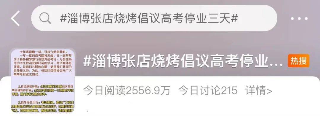“淄博張店燒烤倡議高考停業(yè)三天”