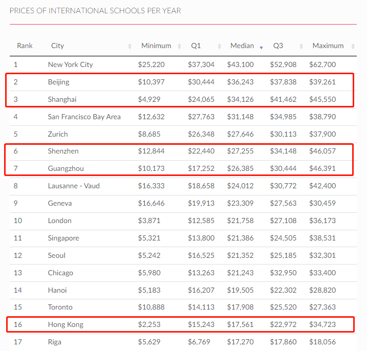 本次廣州的排名從去年的全球第10上升到全球第7,中位數費用上漲了14%,成為2022年中國學費漲幅最大的城市。