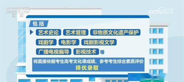 據了解,藝術類專業依據考生高考文化成績、專業考試成績,參考綜合素質評價進行招生錄取。此次藝考改革一個重要的變化是,部分藝術類專業不再組織專業考試,包括藝術史論、藝術管理、非物質文化遺產保護、戲劇學、電影學、戲劇影視文學、廣播電視編導、影視技術等,將直接依據考生高考文化課成績、參考考生綜合素質評價,擇優錄取。