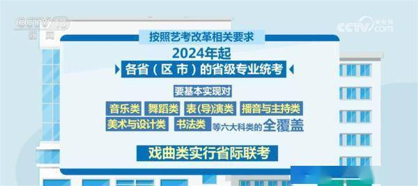 按照藝考改革相關要求,2024年起,各省(區、市)的省級專業統考要基本實現對音樂類、舞蹈類、表(導)演類、播音與主持類、美術與設計類、書法類等六大科類的全覆蓋。戲曲類實行省際聯考。對于考試組織確有困難的個別科類,有關省份可通過省際聯考或“考評分離”等方式實施。據介紹,上海市已按照最新要求對藝術類專業統考進行了調整。