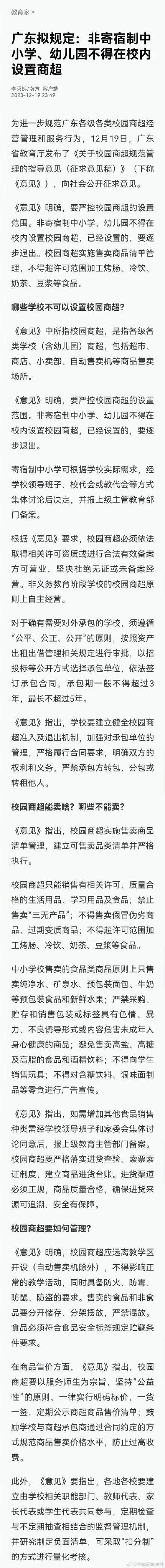 原標題:廣東擬規定非寄宿制中小學校內不得設商超