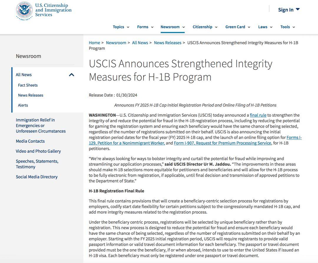 如今,H-1B簽證改革方案的最終規定(Final Rule)終于公布,于2月2日開始進行為期30天的公眾展示期。在此期間,公眾可以查閱并對該方案提出意見或建議。