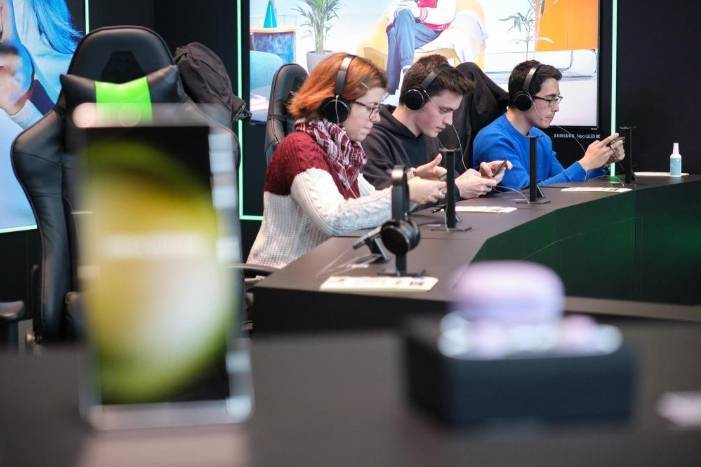 2023年2月27日,參觀者在西班牙巴塞羅那舉行的世界移動通信大會上體驗手機游戲。