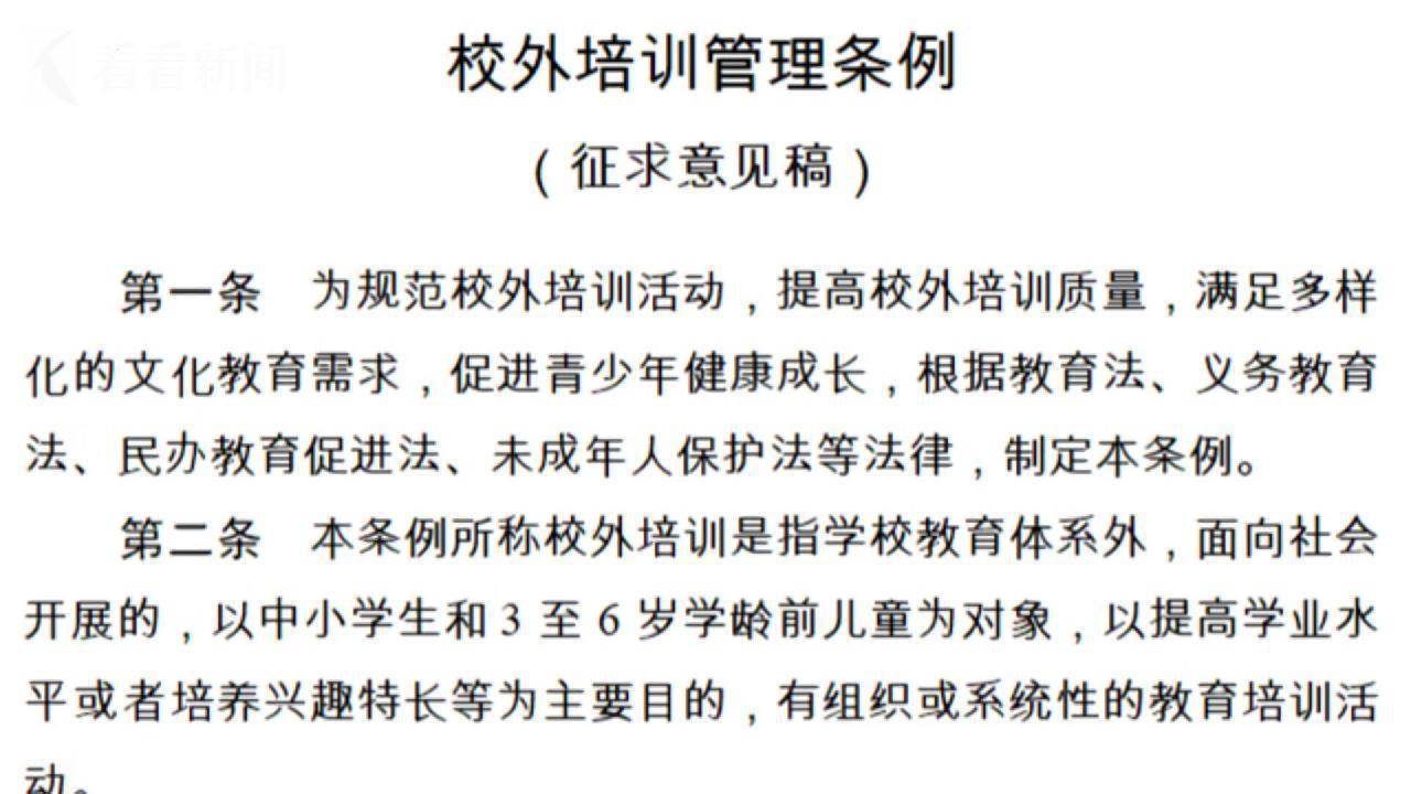 原標題:這份事關校外培訓的條例征求意見 透露了些什么?