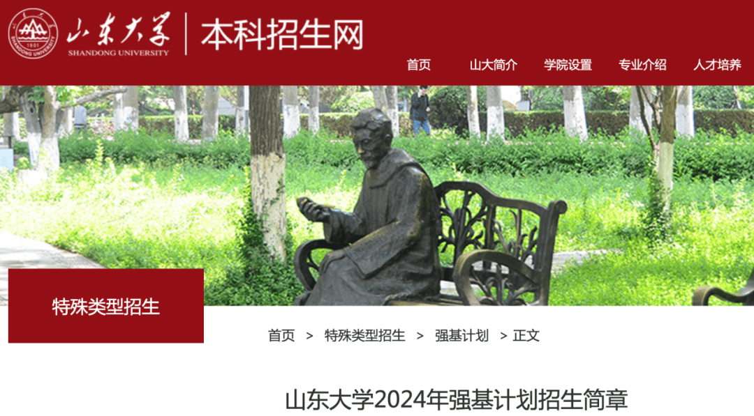 4月12日至30日,考生登錄山東大學強基計劃報名平臺(網址:https://bm.chsi.com.cn/jcxkzs/sch/10422),按要求準確、完整地完成網上報名。