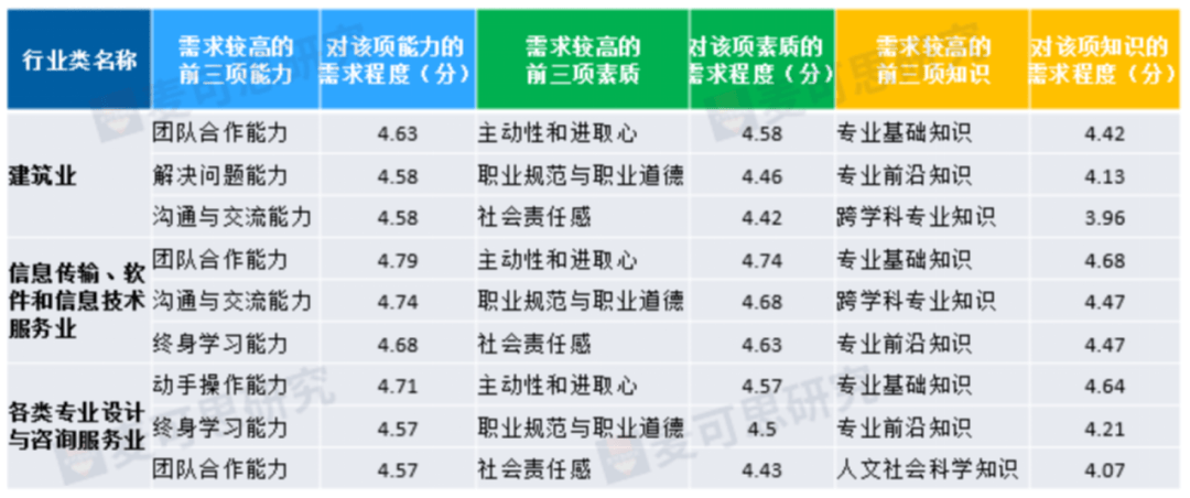 表2 某校用人單位反饋主要行業類的知識、能力、素質需求情況