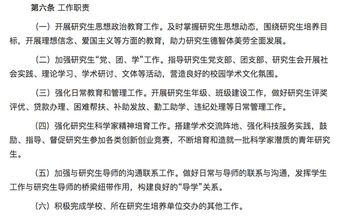 繁雜的工作注定會把每一個輔導員抽成高速旋轉的陀螺,青椒兼職的輔導員也不能例外。在一份某大學關于青年教師兼職研究生輔導員的通知中,寫明的工作職責就有六個部分,背后則是數(shù)不盡的瑣碎內容。