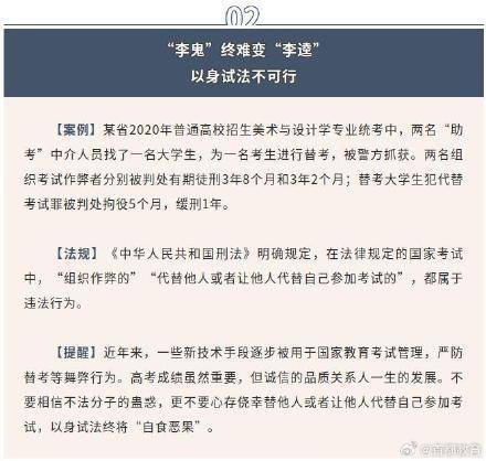 2024年高考在即,教育部近日發(fā)布高考預警信息,公布了組織高考作弊、替考、違規(guī)攜帶手機、“花錢保送”、高考志愿被篡改、“占坑帖”6個典型案例。2024年高考倒計時,廣大考生和家長務必提高警惕,謹防上當受騙,做到誠信考試。