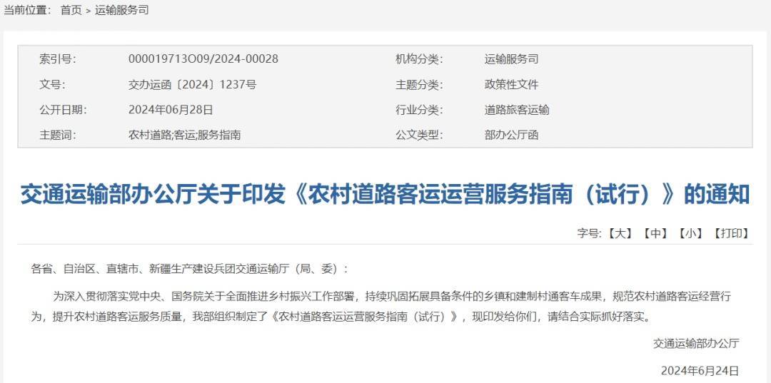 6月28日,交通運(yùn)輸部發(fā)布《農(nóng)村道路客運(yùn)運(yùn)營服務(wù)指南(試行)》(以下簡(jiǎn)稱《指南》)以及相關(guān)解讀。