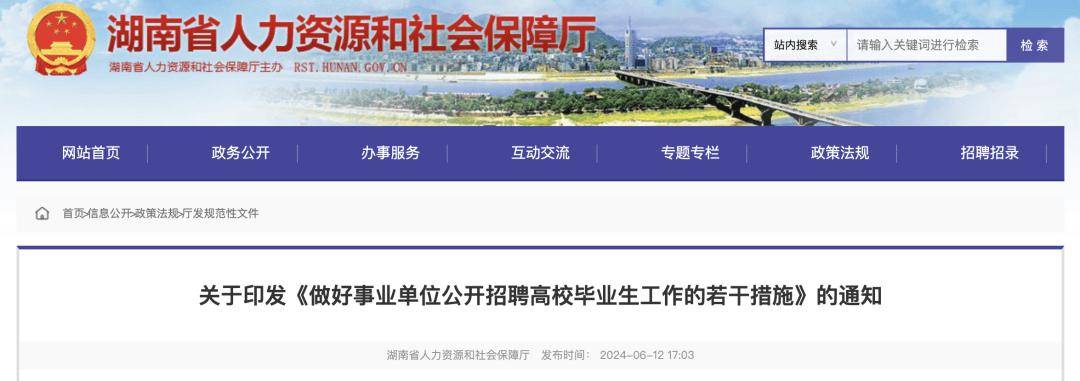湖南省人社廳在6月印發《關于做好事業單位公開招聘高校畢業生工作的若干措施》的通知,明確“高校畢業生”為近3年內畢業、招聘過程中未落實編制內工作的畢業生(即畢業證書落款年度3年內,含畢業當年度),不對其是否有工作經歷、繳納社保作限制。