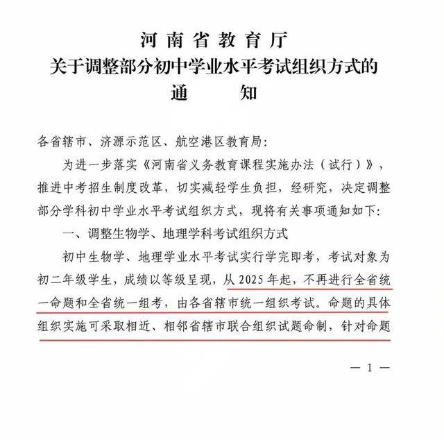 一、2025年起,生物、地理不再全省統一命題,改由各省轄市自行組織,學完即考,對象是初二學生,成績等級呈現。考試時間可隨期末考試一并進行,或在學期末另選時間。