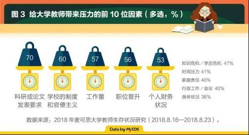 文山會海、過度留痕、頻繁檢查等形式主義問題,也困擾著高校教師。2018年麥可思一項研究顯示,“學校的制度和官僚主義”和“行政工作/會議”成為高校教師10大壓力來源。參與答題的教師中,分別有60%、40%表示以上問題為自己帶來了壓力。
