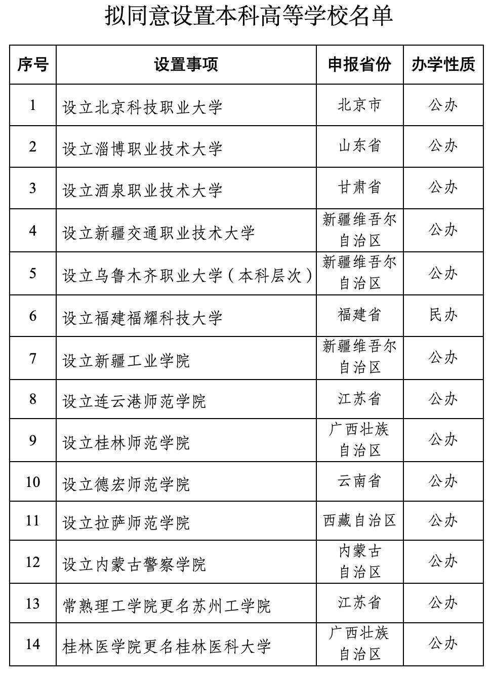 1月13日,教育部網站發布“關于擬同意設置本科高等學校的公示”: